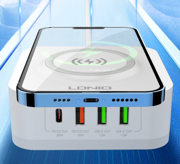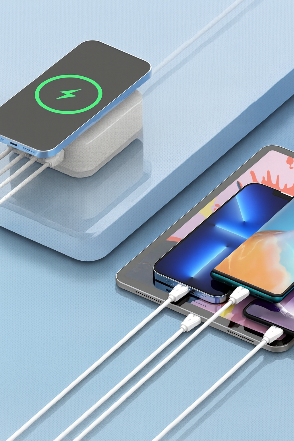 Hleðslutæki á borð 32W 4.990 ISK Setja í körfu Hleðslutæki fyrir allt að 5 tæki í einu!Þráðlaushleðsla og með snúru.4 USB tengi - PD (30W) + QC3.0 (18W) + 2 USB-A, samtals 32W Valmöguleikar Hleðslutæki á borð Ferðahleðsla 5.000 mAh 4.990 ISK Ferðahleðsla 10.000 mAh 5.990 ISK
